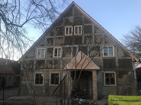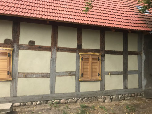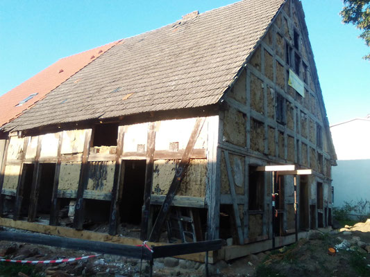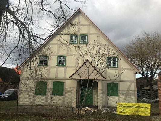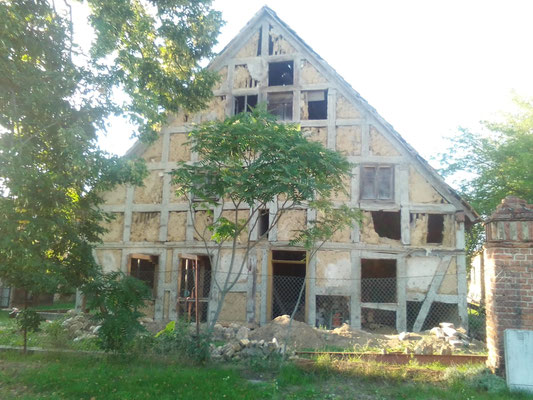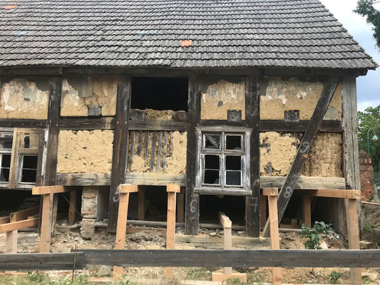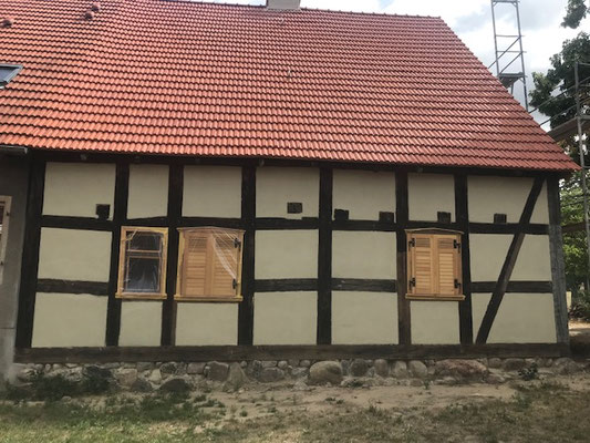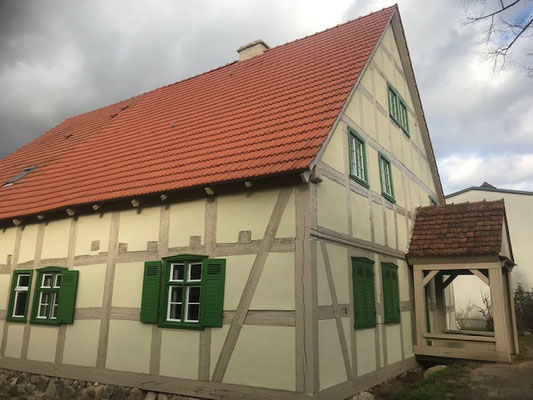 Vor ca. 250 Jahren wurde das Märkische Mittelflurhaus errichtet. Aufgrund seines Denkmalschutzes genießt das Haus strenge Auflagen, die den ursprünglichen Charakter erhalten sollen, eine Nutzung aber ziemlich erschweren können. Die Sanierung des Fachwerkhauses war aus mehreren Gründen dringend notwendig: In der To-Do-Liste des Vereins hatten die Wiederherstellung der Sicherheit und Ästhetik des märkischen Mittelflurhauses sowie die Schaffung von Wohn- und Arbeitsräumen für die Belange des Hofes die oberste Priorität.