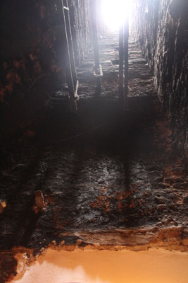 Die Besucher störte zunehmend eine noch offene Grube, in die das Regenwasser des Haupthauses floss. Nachdem Pfarrer Colling fast hineingefallen wäre, als sein Stuhl rückwärts in aufgeweichte Erde sank, gewann das Finden einer Lösung für das Jahr 2016 an Dringlichkeit, insbesondere angesichts des Interesses verschiedener Gruppen an der Nutzung des Innenhofes. Das Regenwasser sollte auf fachgerechte Weise so abfließen, dass einerseits die Gebäude trocken bleiben und andererseits eine Nutzung zur Bewässerung des Gartengeländes möglich werden konnte. Dazu versenkten wir in Zusammenarbeit mit dem Internationalen Bauorden, Flüchtlingen und Schülern der Liebfrauenschule einen 3000-Liter-Tank in der Erde.