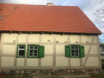 … wurde 1792 erbaut. Vom Altersprozess gezeichnet stand das Fachwerkhaus an der Pforte des Grundstücks. Das Haus wurde von 2021 bis 2025 außen wie innen instandgesetzt und ist nun in saniertem Zustand ein Schmuckstück nicht nur für den Verein, sondern für das ganze Dorf.